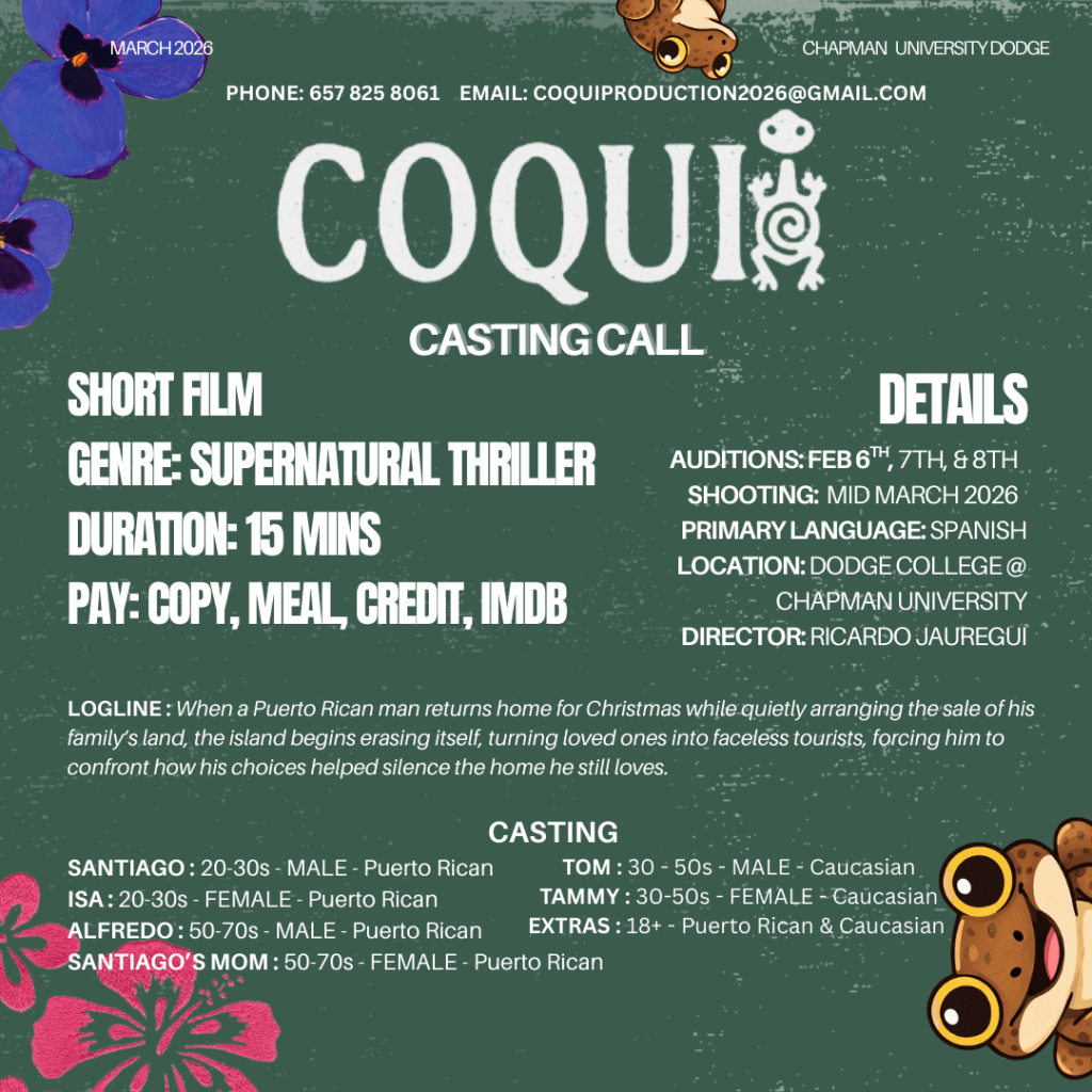 We invite you to be part of the process — follow our production Instagram for behind-the-scenes updates, casting announcements, and exclusive looks into the world of Coquí: